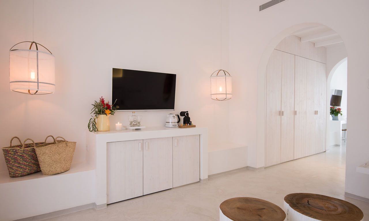 In addition to a patio at the entrance of the suite, there is also a small terrace at the back of the house where you can enjoy the views of the mountains and the sea.